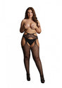 Suspender style pantyhose with strappy waist and open criss-cross backseam. This style fits size 2XL-5XL. Thong not included.
