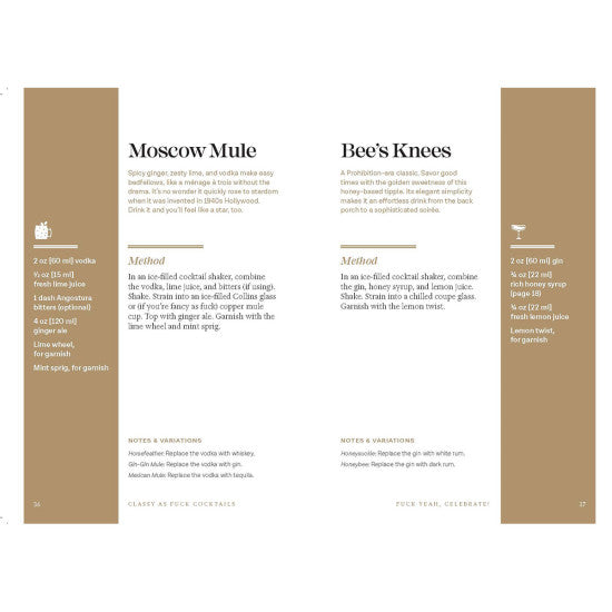 Complete with a gold foil-stamped cover, gilded page edges, metallic ink, and sassy calligraphy throughout, Classy as Fuck Cocktails is a stylish addition to any home bar.