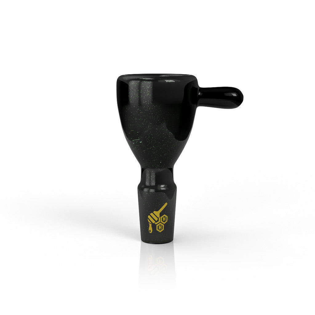 Elevate your smoking experience with this exquisite Honeybee Herb dichroic glass bowl, featuring a mesmerizing flooded galaxy design in rich green tones. The 14mm joint size ensures seamless compatibility with standard water pipes and rigs. Crafted with precision, the dichroic glass exhibits stunning color-shifting properties that dance with light, creating an ever-changing visual spectacle. This premium bowl combines artistic craftsmanship with functional durability, making it both a striking decorative piece and a reliable accessory for discerning enthusiasts who appreciate quality and aesthetics.