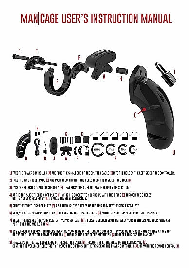 The Man|Cage Chastity Cages are manufactured from high-grade polycarbonate, a very light, durable and hypoallergenic material. The cage consists of three parts which fit perfectly together. The two guidance pins connect the top parts and the oval taper pin connects the rings with the cage. A variety of rings in different sizes and distance pieces will allow you to create the perfect size! The rings have a comfortable fit and are absolutely safe. A metal lock or tie-wrap lock can easily close the cage. The included tie-wrap locks ensure that they will not trigger the alarm of metal detectors at parties, festivals or even airports! As hygiene is very important while wearing a cage, the superior Man|Cage series are equipped with a variety of vents and a urination opening. The cage makes it impossible to get an erection but it will be, after liberation, super intense, just like the freeing orgasm to follow! The Man|Cage Chastity Cage gives the key-holder optimal power over sexual gratification!