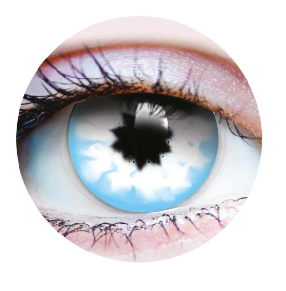 NIGHT KING contact lenses feature a white center and bright blue outer edge creating a smoke effect. A narrow transparent pupil gives a striking enhanced effect.