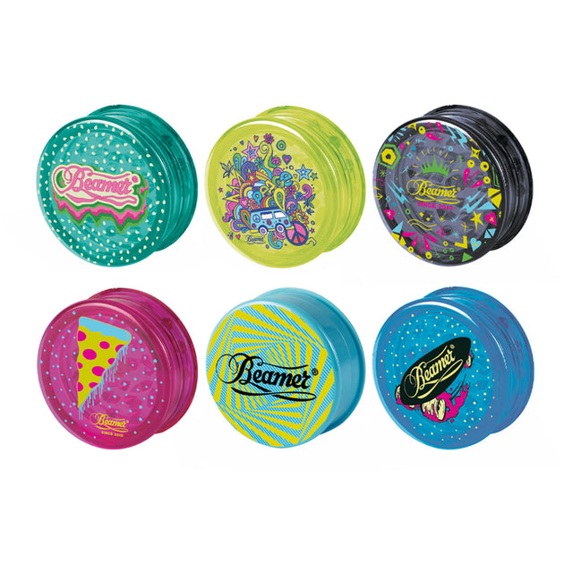 Beamer 3-piece 63mm grinders are the perfect portable grinder to bring with you when you’re out and about. Made of acrylic, they are lightweight yet durable, and their sharp teeth allow it to shred even sticky herbs. The grinder features a storage compartment for storage. Sold as a display of 12 assorted stellar edition designs that may differ from images.