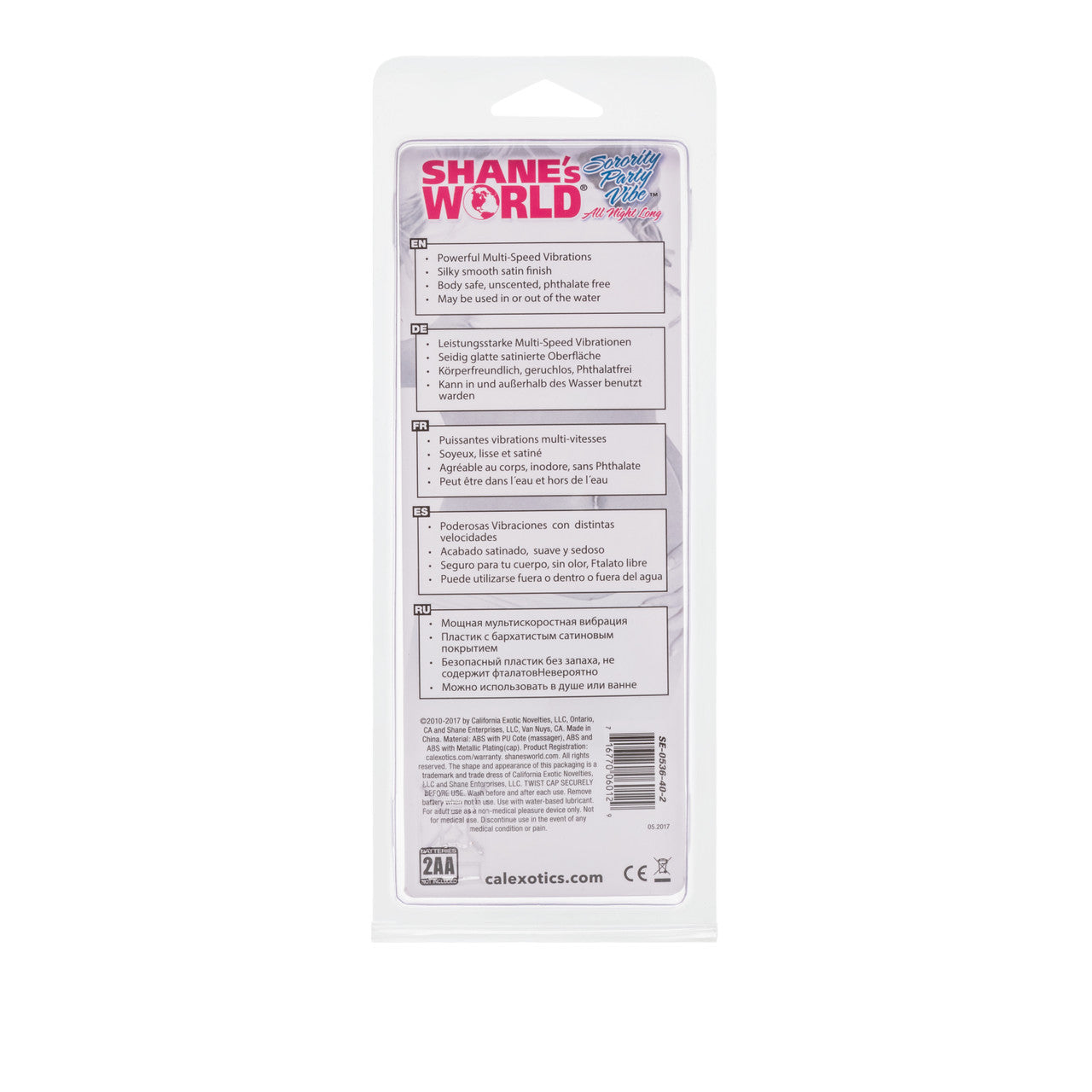 Whether you're exploring solo or enhancing intimate moments with a partner, the Shane's World Sorority Party Vibe All Night Long delivers a reliable and intense performance. Perfect for those who want to keep the fun going all night long.