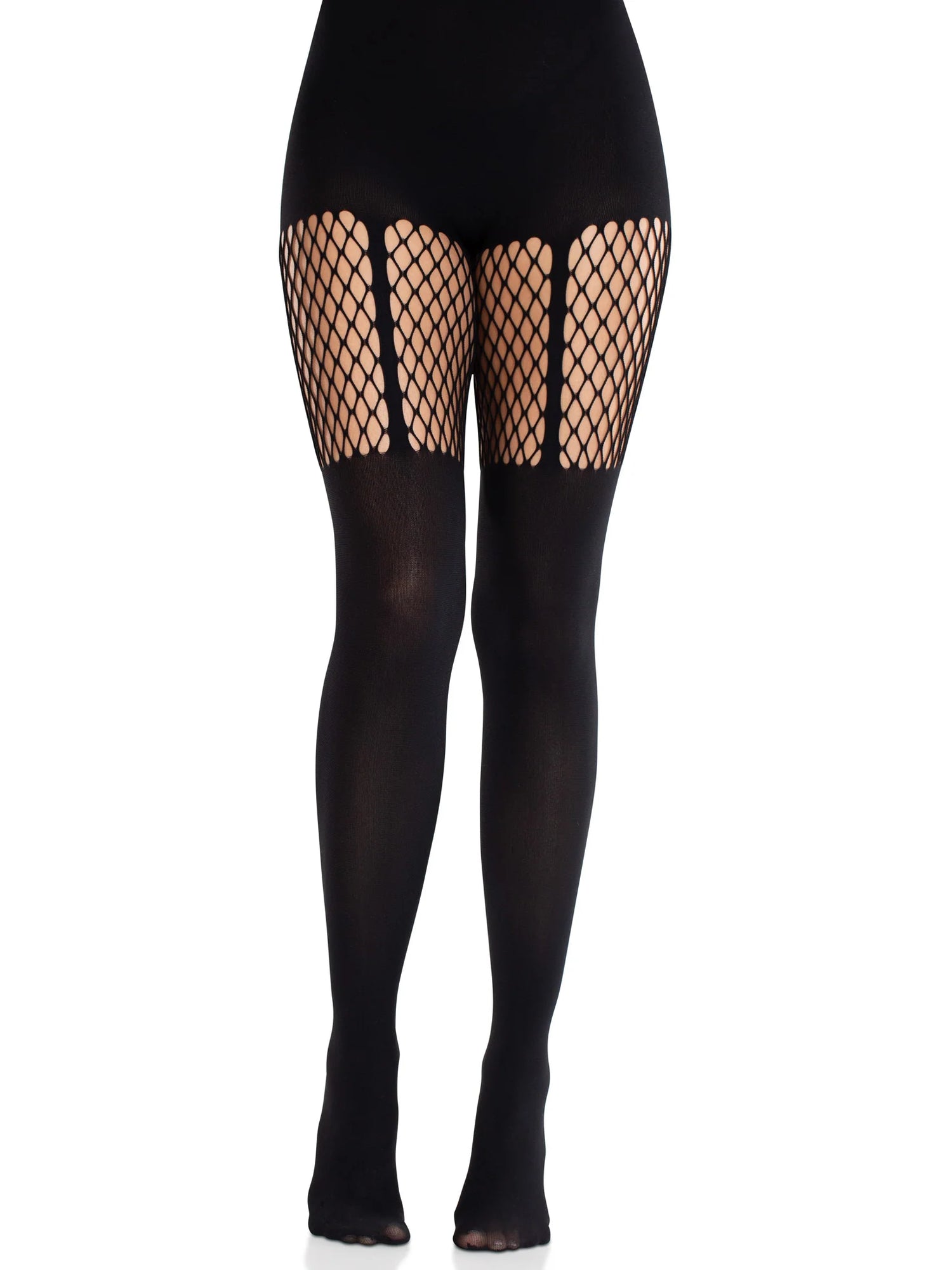 A wardrobe basic, the sleek look and full coverage of the Jett opaque tights by Leg Avenue effortlessly elevates any style. The net garter detail of these stockings combines lingerie design with classic seamless pantyhose for a must-have accessory.