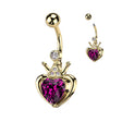 Belly Ring: Surgical Steel Heart Crown-Pink