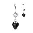 This 316L surgical steel belly ring features a semi-precious black agate stone dangle that adds an elegant touch to your piercing. The dangly design provides a unique and trendy look and is crafted with surgical steel. Upgrade your piercing game with this stunning piece.