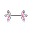 Nipple Ring: 316L Surgical Steel CZ Petal Nipple Ring Barbell with Pink CZ