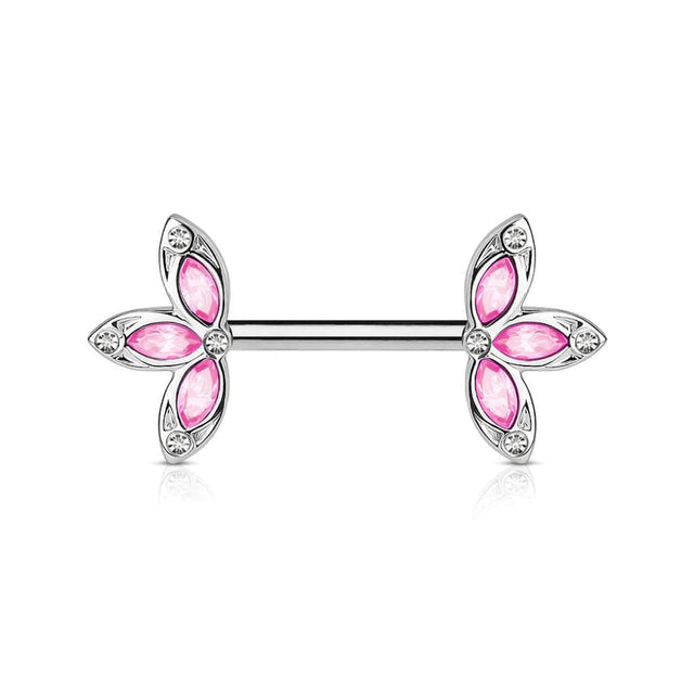 Nipple Ring: 316L Surgical Steel CZ Petal Nipple Ring Barbell with Pink CZ is backordered and will ship as soon as it is back in stock.