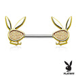 Nipple Ring: Surgical Steel Double Front Facing Glitter Playboy Nipple Ring Barbell is backordered and will ship as soon as it is back in stock.