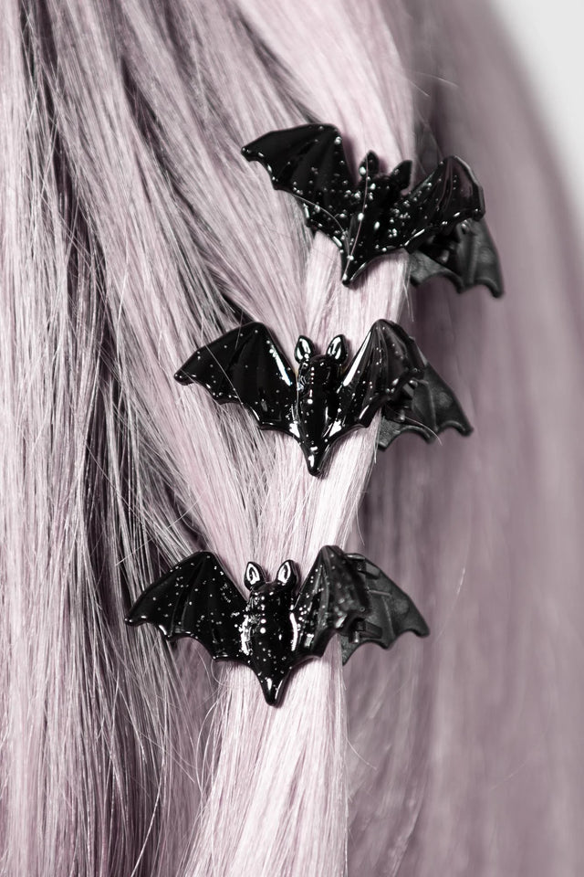 Creepy but cute - the perfect combination! Finish off your fav dark looks with the 'Wing It' hair claws. Spook and sparkly - with added glitter! Featuring a cute bat design!