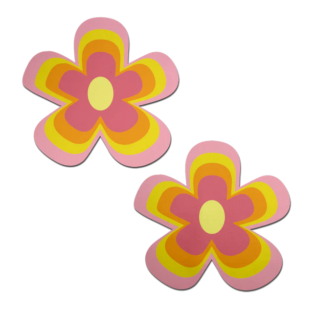 Groovy Flower Pasties by Pastease® are hand-made in the USA of soft form-fitting material that forms seamlessly to curves and resists wrinkling over hardening nipples.