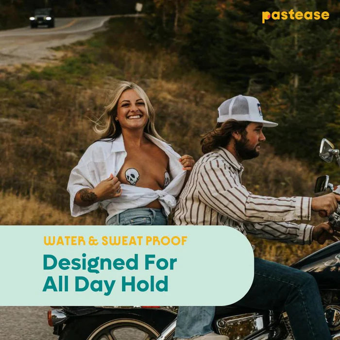 All Pastease® feature latex-free, medical-grade, waterproof adhesive that stay securely in place for as long as you like and until they are gently removed.