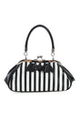 STRIPED RETRO INSPIRED HANDBAG WITH BAT DETAIL AND DETACHEABLE SHOULDER STRAP FAUX LEATHER AND TEXTILE LINING