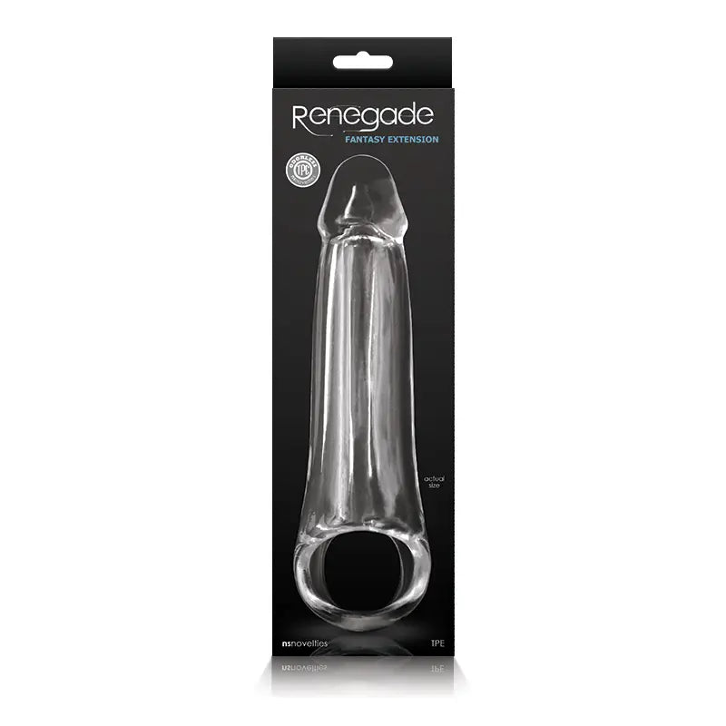 Renegade’s clear penis extension provides enhanced visual excitement, added girth and length for heighten sensations and pleasures. Made of odorless, body-safe TPE. Suitable with all lubricants.