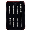 This set contains 6 hollow stainless-steel penis plugs that are interchangeable with the long handle, they simply screw into the tip.
