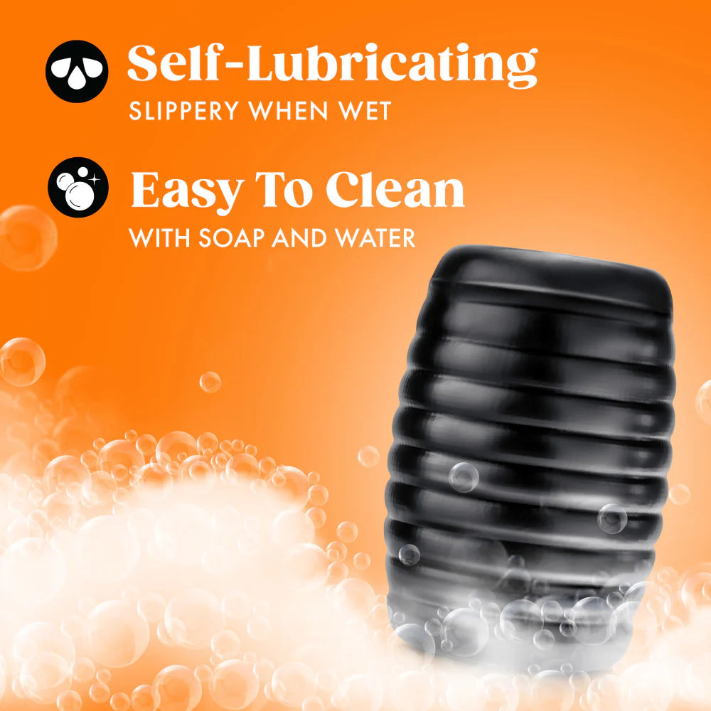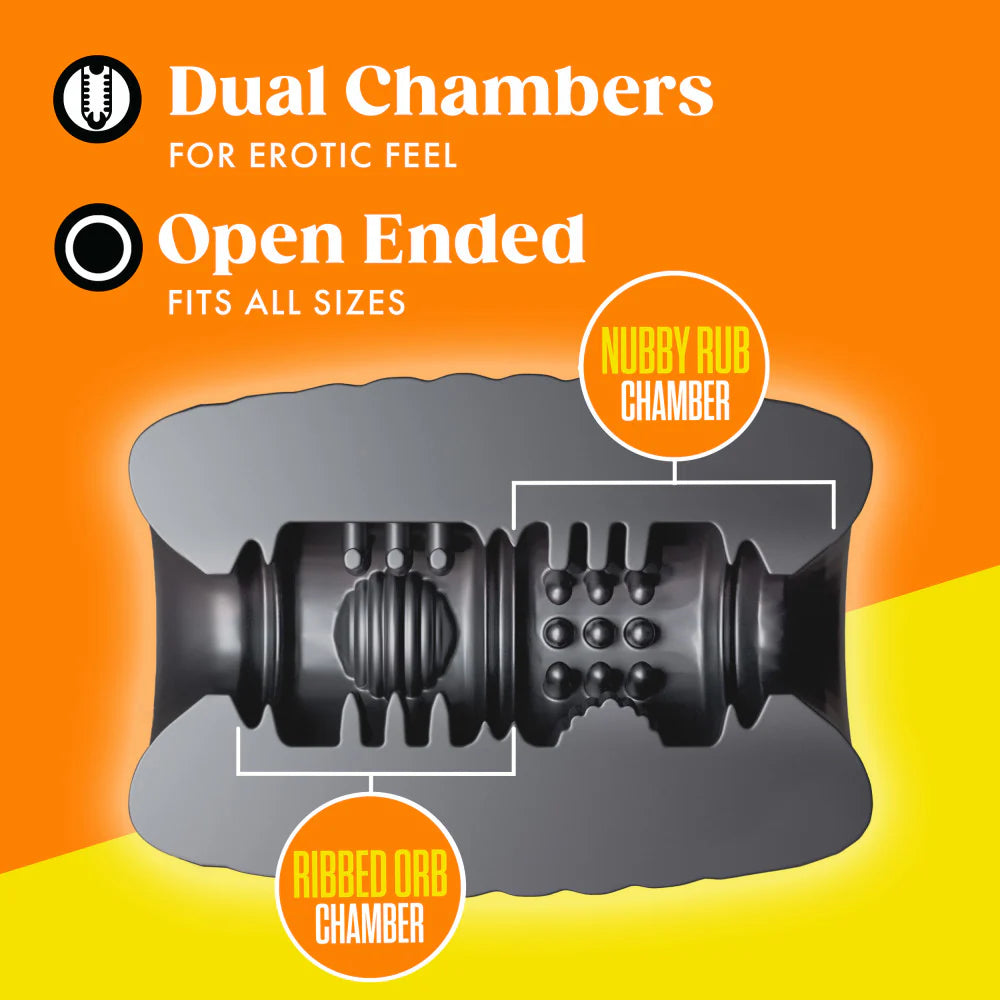 The Rize! Grasp is loaded with fun! This versatile pocket stroker is a man-cave essential. With self-lubricating technology, all you need is to add a little bit of water or saliva to your stroker to make it slippery and smooth, then slide right in! Grasp is made with premium X5® Plus, which feels incredibly silky to the touch, providing luxury with every movement. Featuring dual erotic pleasure chambers including a ribbed orb chamber and a nubby rub chamber, you’ll experience the perfect combination of massaging sensations. Grasp naturally warms to your body temperature, adjusting to your touch to heat up your desires for a highly realistic feel. Grasp onto your stroker with textured grip, applying desired pressure to match your preferred intensity while stroking. Get ready to destress and release. This pocket stroker is small, discreet and easy to clean. Make your solo play the best time of day - Let Grasp be the reason you Rize!