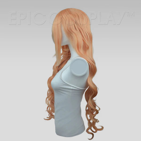 Our Hera style is one of our most iconic styles known for its soft, luscious curls and incredible length. This long curly Peach Blonde wig measures at a total of 40 inches with long bangs that fall to approximately 11 inches. Due to the length of these bangs, versatility is practically endless when it comes to styling; You can pin them to the side, part them in the middle for a face framing look, or give them a little trim to create your own perfect Hime cut bangs. This long curly Peach Blonde wig is available in a wide variety of beautiful and unique colors, which can all be viewed here.