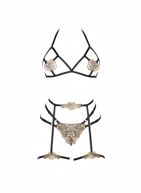 $64.95 CADUnit price /UnavailableEvangeline Satin & Chain Bra Set- Black