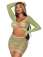 Go bold in this 2 PC lingerie set by Leg Avenue, featuring a zig zag net crop top with sultry deep-v neckline and gauntlet sleeve, eye catching contrast color trim, and matching mini skirt. Sexy and versatile, this set is perfect in the bedroom, pool side as a swimsuit cover-up, or fun festival outfit. (Panty not included)