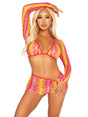 Turn heads and break hearts in this jaw-dropping 3 piece bra and panty set by Leg Avenue. Featuring a bold zig-zag net bikini top, cheeky boyshorts, and a matching shrug, this summer-ready stunner is made to steal the spotlight.