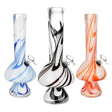 These Marvelous Mushroom Soft Glass Water Pipes are crafted with malleable soft glass into elegant shapes with vivd coloring. The pipes have a twisted stripe design and a mushroom-shaped base. These water pipes stand 12 inches (30.5cm) tall, and each pipe includes a grommet style herb slide connection and downstem. Colors vary.