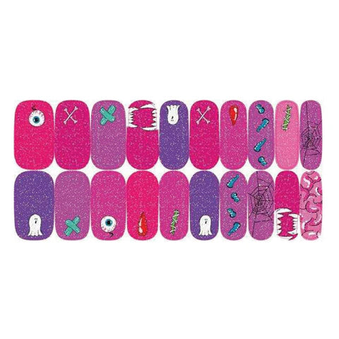 If you wanna look as magnificently monstrous as your favorite 90's Nickelodeon show, then these cartoonish nail wraps are for you! Adorbs designs such as eyeballs, fangs, blood drops, bones and braaaaains will have you screaming in delight! These stick on nails have a frighteningly easy application process and you'll have salon looking nails at ten percent of the cost in a Zimbo! Get ready for a Monster Makeover, and let's make sure everyone knows that Monsters DO Dance!
