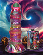 It's time to get bred by alien visitors. This thick, textured shaft from Creature Cocks is one of the most colorful yet with a mix of rich, vibrant, iridescent colors with shades of pink, green, orange and purple. The shaft itself is large and thick with tiny bumps on the head, ribbed texture along the opposite side, and a mixture of textures along the rod down to the wide, suction cup base. It can be used hands-free with the assistance of the suction cup or combined with a compatible harness for penetrating strap-on play or pegging! Insert any or all of the four larva eggs into the hollow sheath and then insert them into your hole, letting the ovipositor deposit those eggs to be birthed out of you later after you're full! Made out of flexible, super soft, premium silicone both the dildo and the eggs are phthalate-free, body-safe, and best used with water-based lubricants only. To clean after, use warm water and mild soap then spray with a toy cleaner before patting dry.