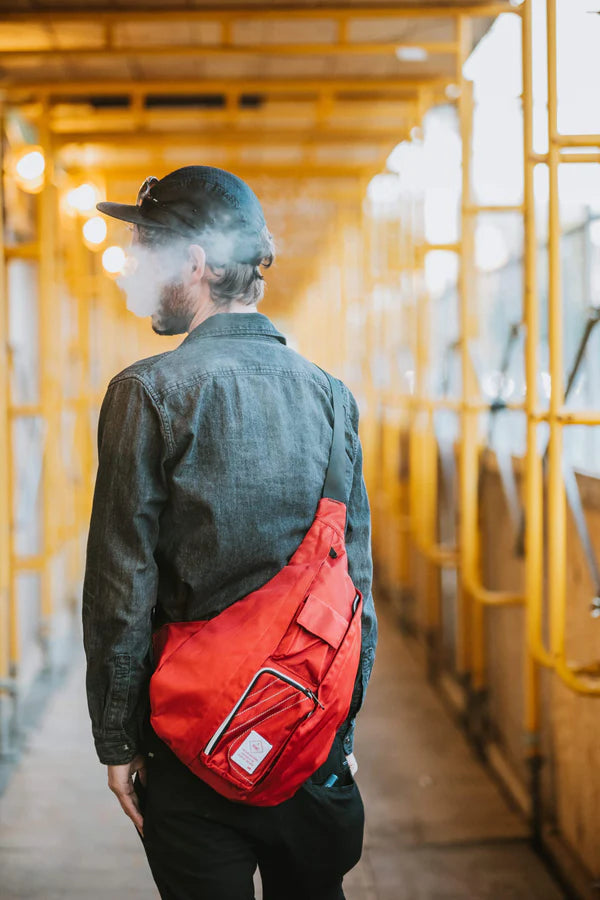 "The Slinger likes going for hikes, hustling through the crowd to get to your next class or even a trip to the skate park. Caught in the rain? Shit happens, but not to worry! The Slinger is available in water-resistant material to help wick moisture off and keep all of your belongings safe inside. It's also available in our Hempster material.