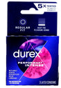 Designed to speed her up and slow him down, Durex Performax Intense latex condoms are ribbed, dotted and lubricated to intensify sensation featuring a special delay lubricant that prolongs sexual performance and provides a more intense experience for you both. For maximum benefit, carefully follow the condom instructions inside this package. Latex condoms do not completely eliminate the risks of pregnancy and sexually transmitted infections (STIs). To get the most protection from a latex condom, use one correctly every time you have sex. Please see directions for use inside the package. There are many STIs. A latex condom can reduce the risk of STI transmission to or from the head of the penis. However, some STIs can also be spread by other sexual contact. For additional information on STI protection, please read the information inside the package. If you believe you have an STI, contact a health care provider. For more information on condoms or STIs, contact a health care provider or public health agency.