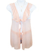 Sensual flow and seductive transparency make this flirtatious babydoll in Cherry Blossom a must-have to add to your lingerie collection. Open bust design, with ruffle details and a satin bow in the front, adjustable straps, and matching thong. This comfortable babydoll is flattering to all body types with a simple tie front, and soft breathable mesh fabric.