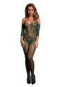 Longsleeved bodystocking with lace pattern and open crotch. Can be worn on or off-shoulder. This bodystocking has some stretch and can be worn from size XL to 4XL.