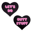 Love: 'Let's Do Butt Stuff' in Black & Pink Heart Nipple Pasties by Pastease®