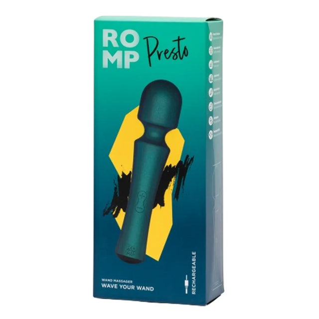 ROMP Presto is a mini wireless wand vibrator that works its magic. With powerful vibrations at 6 intensities and 4 pattern modes, this vibrator makes orgasms appear with just a wave of the wand. The smooth and squishy silicone head offers versatile, intense stimulation, perfect for targeting all the right spots. Waterproof and rechargeable with travel lock, ROMP Presto is designed for both convenience and unforgettable pleasure, whether you're enjoying it in or out of the water.