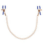 These exquisite clamps feature a gold chain and striking blue plastic tips, blending elegance with a touch of wild playfulness. Perfect for those new to BDSM or seasoned enthusiasts, the adjustable thumb-screws allow you to control the pressure, ensuring a tailored experience. The shimmering gold chain not only adds a sophisticated touch but also offers a tempting opportunity for gentle tugs as passion intensifies. Let your imagination run wild and explore the tantalizing sensations these versatile clamps can bring to various parts of your body.
