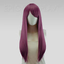 This wig is a Dark Plum Purple long straight wig perfect for cosplay, costuming, and even casual daily wear. As one of our most versatile styles, you're free to cut it, curl it or style it in any way that suits your needs. This Dark Plum Purple long straight wig reaches a total length of 28 inches and comes with 6 inch bangs that can be simply swept to the side, trimmed, or styled in any way otherwise. A unique skintop at the hairline of this wig offers a natural and realistic looking part that can be changed with heat or left as is. Our wigs are made of tangle resistant fibers that make maintenance and care an easy, hassle free job.
